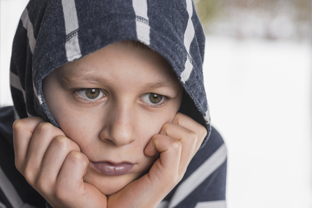 悲しい少年 悲しい顔で十代の若者をクローズ アップ うつ病と孤独感とストレス概念 の写真素材 画像素材 Image